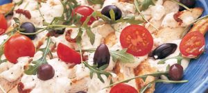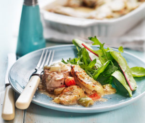 - Servera kycklingen med ris och sallad.